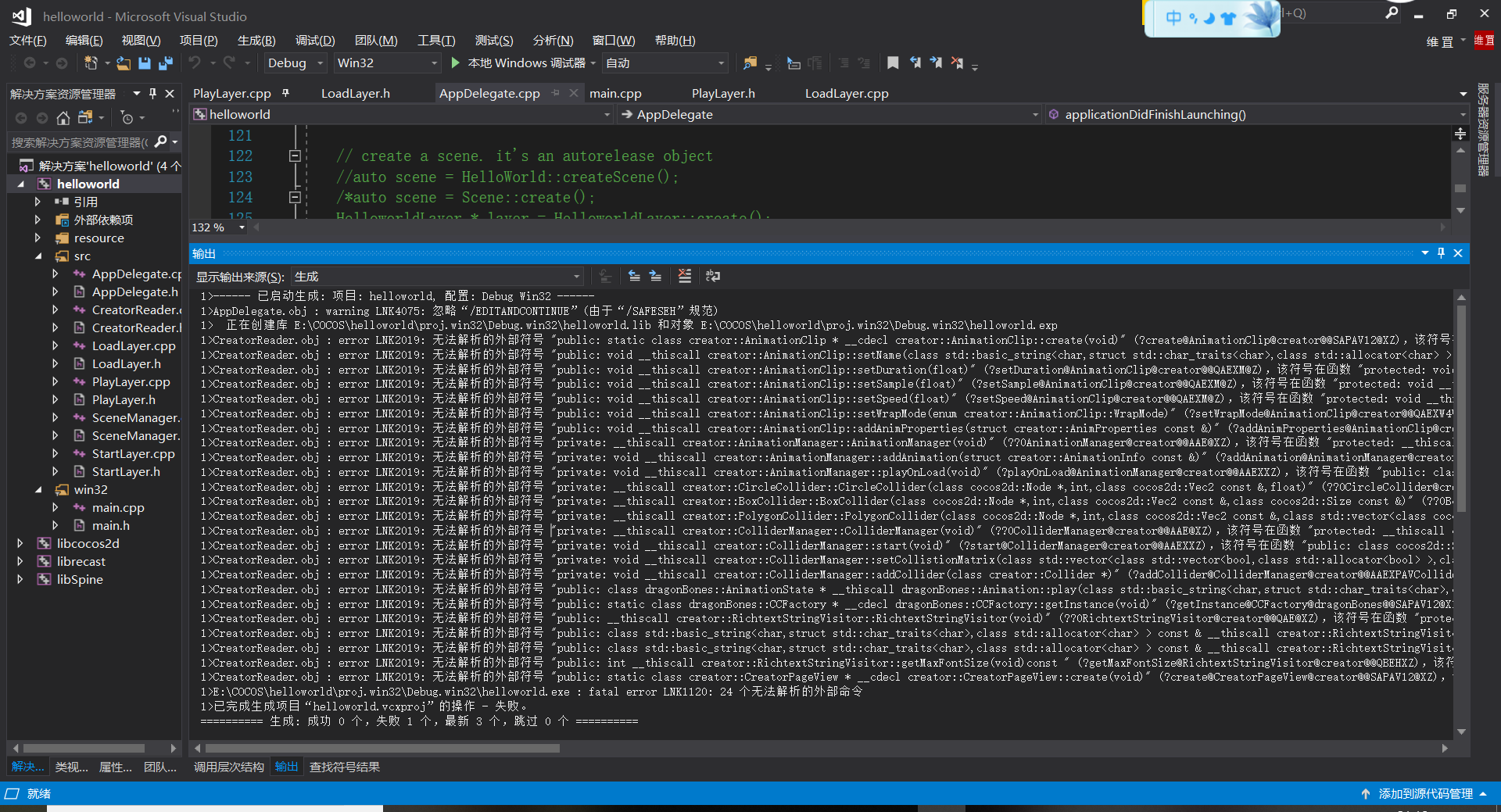 creator 到 cocos-2dx 有问题VS2017无法解析的外部符号