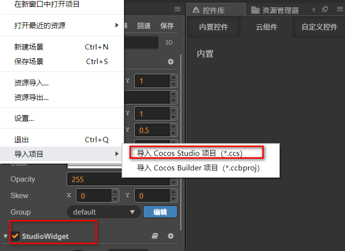 【1】.请问在creator里面导入cocosStudio的项目studioWidget如何去掉?