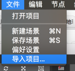 打开编辑器后,选择主菜单的 文件/导入项目 :
