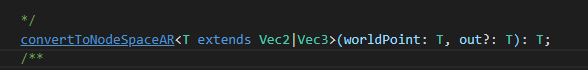 引擎里面的一段ts定义文件。 我刚更新的定义文件,发现ts语法出错了。 如果我理解的没错,这个返回值类型跟输入的值类型一样。为什么不这样写呢。 明确告诉编译器返回值是什么类型,不需要再类型断言。