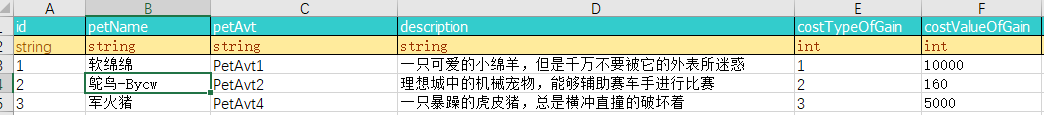 (2)每个数据表格,第一行必须是字段,第二行必须是类型 (如图2);