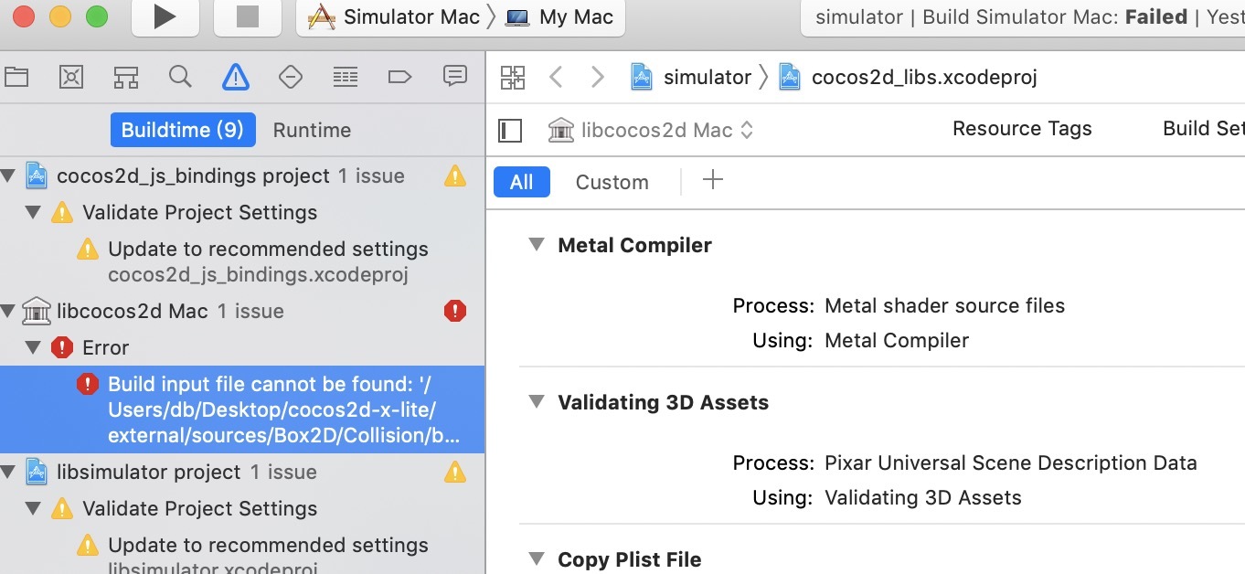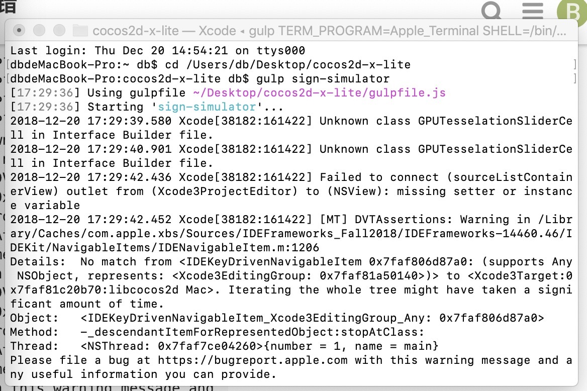 编译gulp gen-libs 都成功了,执行 gulp sign-simulator吊起xcode 模拟器的时候出错了