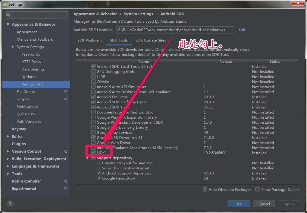 使用android stduio内置的管理器,重新下载sdk和ndk,可以解决。