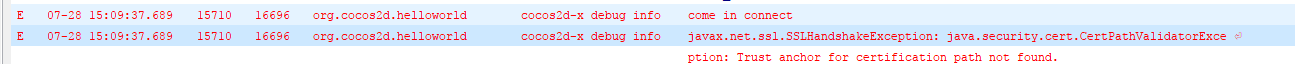 07-28 15:09:37.689: E/cocos2d-x debug info(15710): javax.net.ssl.SSLHandshakeException: java.security.cert.CertPathValidatorException: Trust anchor for certification path not found.