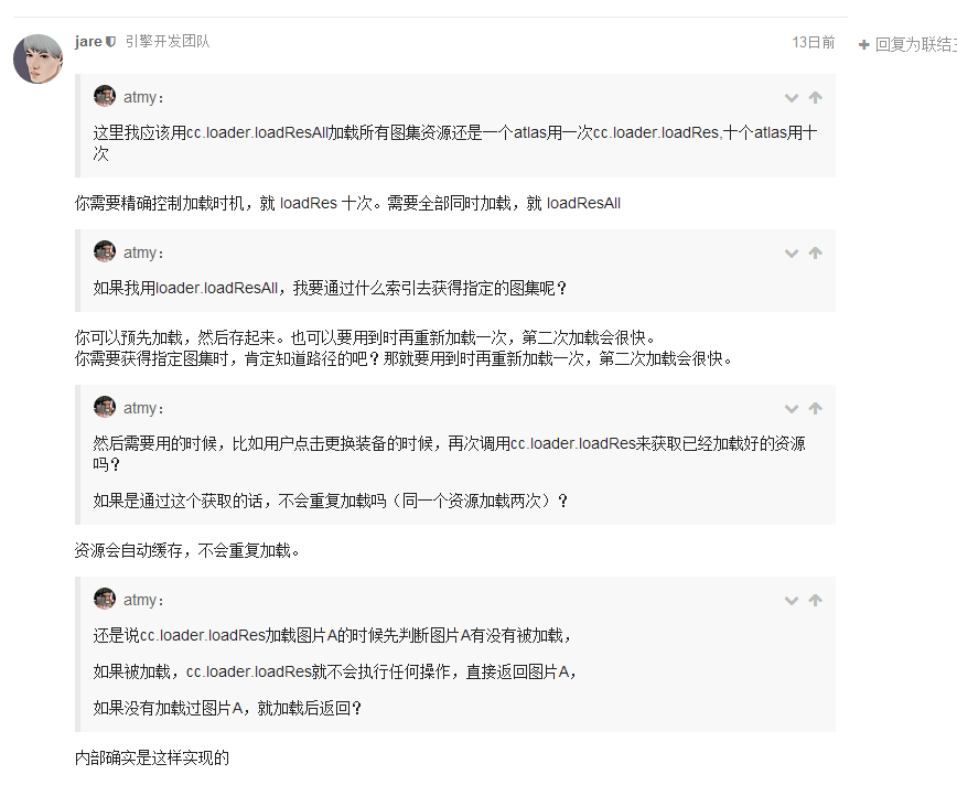 获取和加载资源文档中提到,loadScene加载场景时,所依赖到的很多Asset都会被自动加载,而loadRes和loadResAll则是动态加载, 之前我在论坛的一个帖子里面了解到,通过loadRes加载的资源会被自动缓存,一旦缓存过后,以后通过loadRes加载同一个资源,速度就会很快。