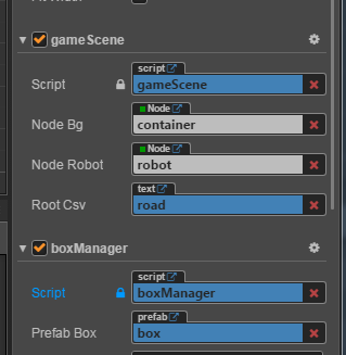 想请教一下大家: gameScene绑定了两个脚本: 然后在脚本gameScene中调用boxMgr: 上传中… 上传中… 然后在代码输出中发现,boxMgr中的reloadAll方法比boxMgr中的onLoad先调用,这是为什么呢,应该怎么修改才好?