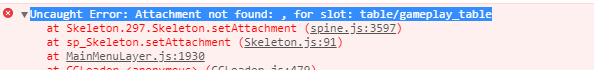 creator 2.0.9版本的spine已经升级了。如果直接调用 spine.setAttachment(“slotName”, “”) 会引起错误,spine的js库报错误,Uncaught Error: Attachment not found: , for slot: table/gameplay_table。