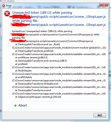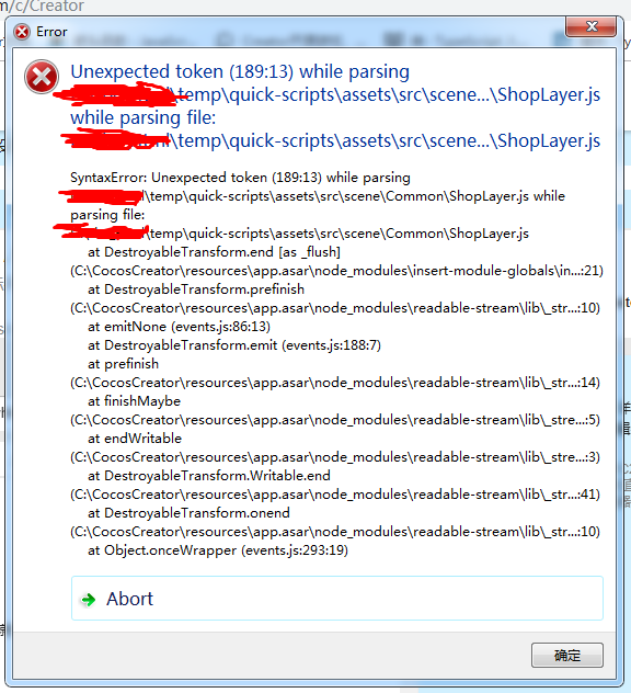 详细报错信息,包含调用堆栈:打不开项目