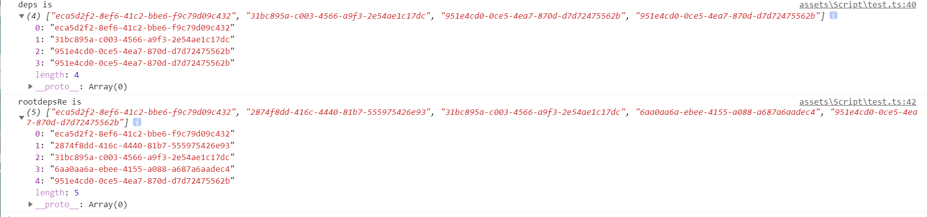 在2.4.2版本中获取一个通过动态加载的预制体所依赖的资源:发现依赖的uuid里面有重复的uuid,为此预制体的动画文件uuid (通过api cc.assetManager.getDeps(rootPrefabUuid))