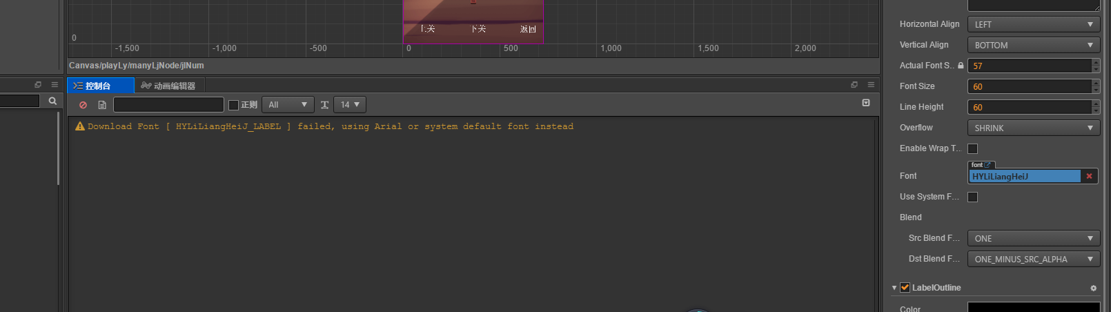 警告:warn: Download Font [ HYLiLiangHeiJ_LABEL ] failed, using Arial or system default font instead