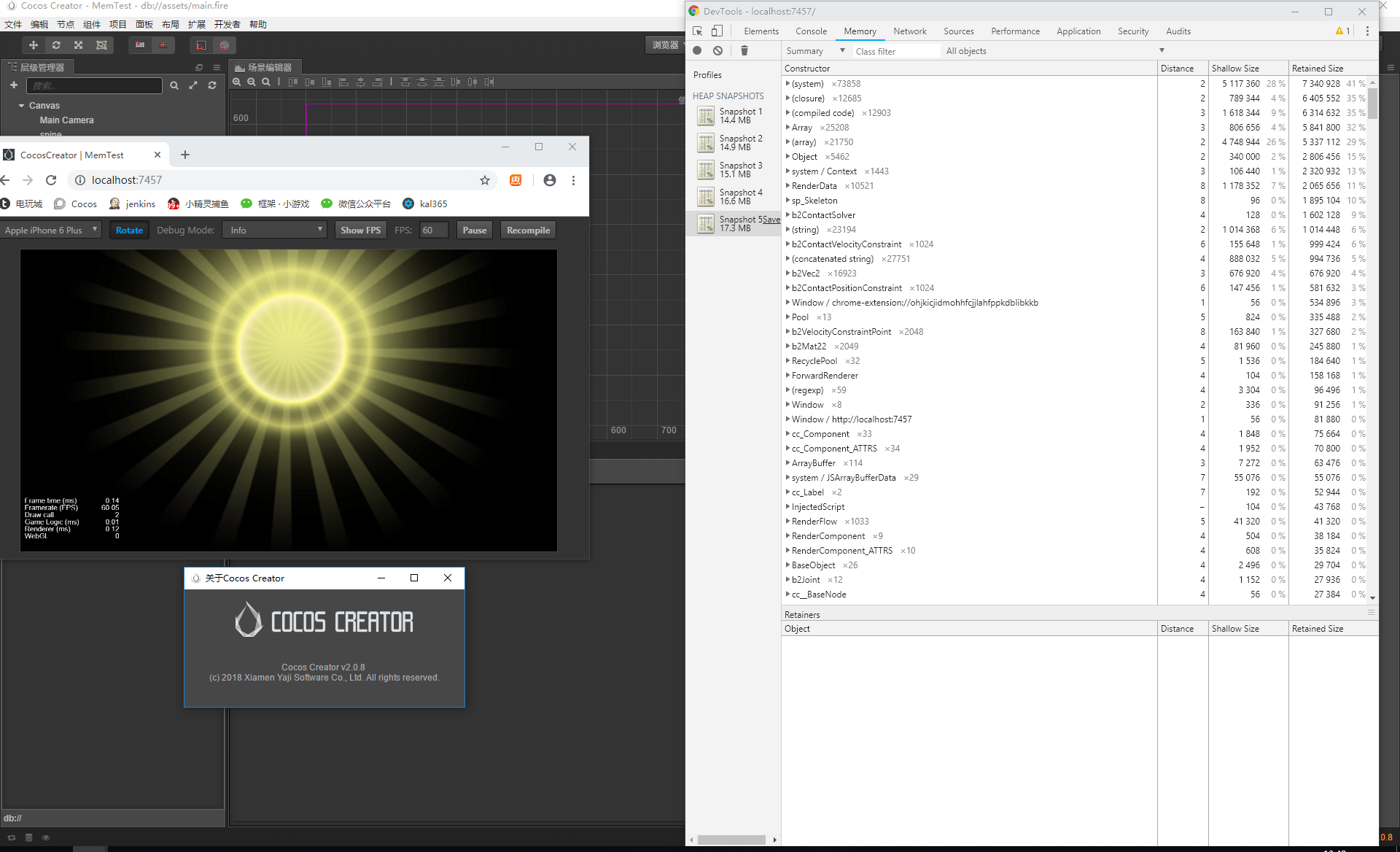 这个demo确实有内存泄露啊,15分钟从16MB涨到26MB,一个很简单的demo