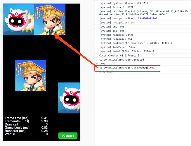 2、在代码中开启了动态合图,v2.0.7-beta3在谷歌浏览器中预览正常,但是打包h5或者微信小游戏图片不渲染(引擎没有裁切任何模块)