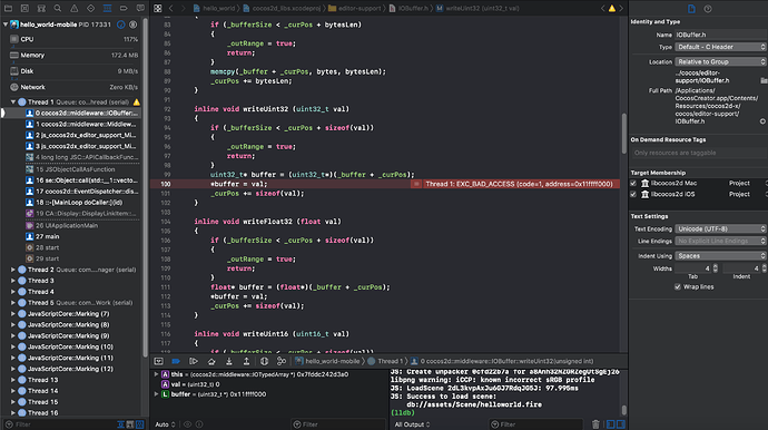 I have tested HelloWork project with build for platform iOS and it always crash on loading game with iPhone 6 Plus( iOS 9.3). Other iPhones with iOS 11.2 or 12.2 run ok.