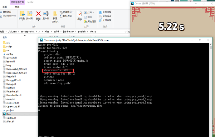 我擦,找了一下午,终于找到问题所在了,binary的模版里比default的模版多几个c++文件(我已经发现的,其他没发现的不管),而且binary编译的项目还是用模拟器运行(虽然模拟器也算win32程序),然后,在你项目根目录/ build / js-binray / frameworks 目录下,有一个SimulatorWin.cpp文件,其中有这样的语句
