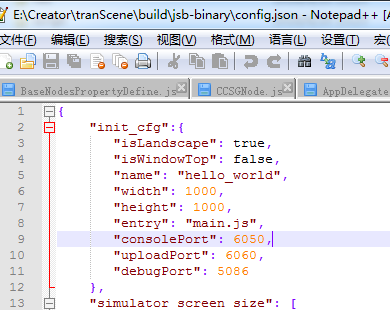 如果是binary的模版,你在构建以后到项目根目录 \ build \ jsb-binary 找到config.json,用文档编辑器打开