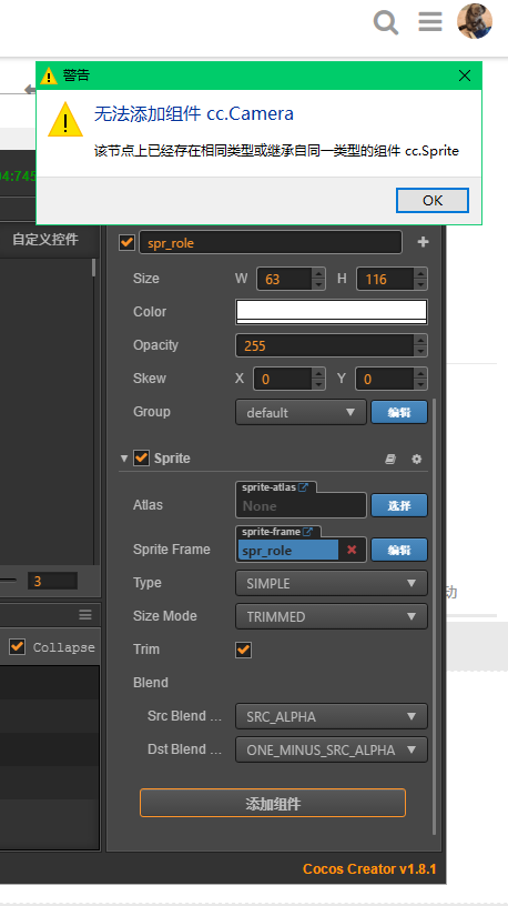 有sprite 组件的节点上再加 camera 组件会报警告。