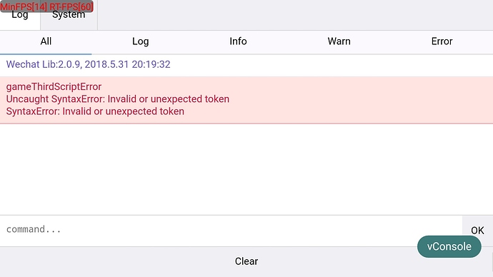 cocos creator版本1.9.1,生成微信工程后在微信工具( 1.02.1805181)上面运行没有问题,但是在生成预览以后,在android手机上报错。在其他平台上面运行也都没有问题。我使用咱们官网的Matchvs插件。