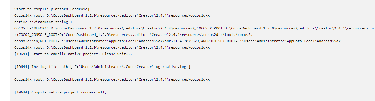 D:\CocosDashboard_1.2.0\resources.editors\Creator\2.4.4\CocosCreator.exe --path E:\buildtest --build “platform=android;autoCompile=true;configPath=build.json”