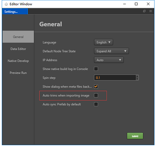 编辑器预设中,把通用选项卡里面的自动裁剪图片勾掉后面导入的就不会裁剪了