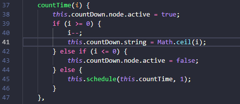 if(i<=0){ clearInterval(this.rs); this.countDown.node.active = false; return;}