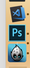 在photo shop和cocos模拟器之间应该是creator应用,但是现在图标不见了 -