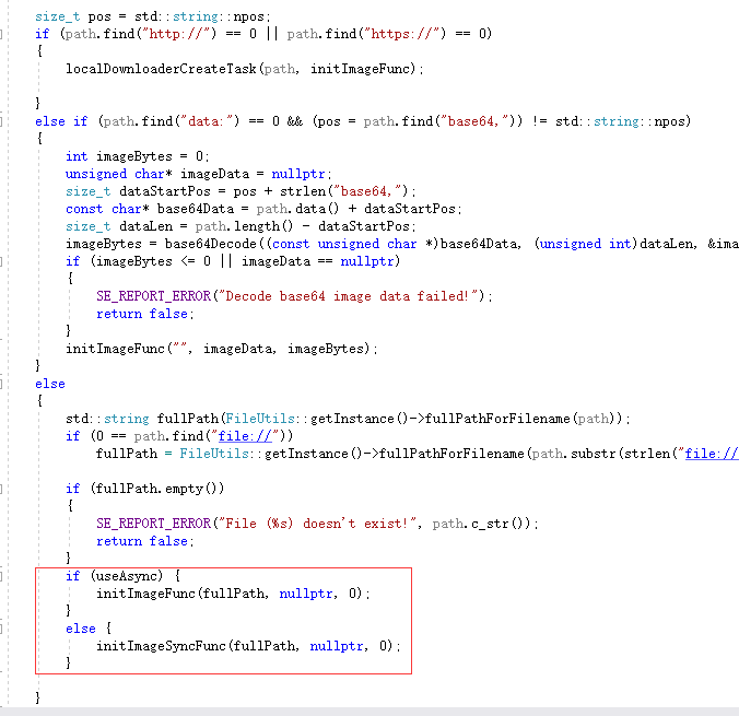 native中,即使异步,也始终逃不过要在c++代码中读取文件,然后把文件内容传递给js层,跟踪代码发现,加载图片资源的代码在jsb_global.cpp的jsb_global_load_image函数中