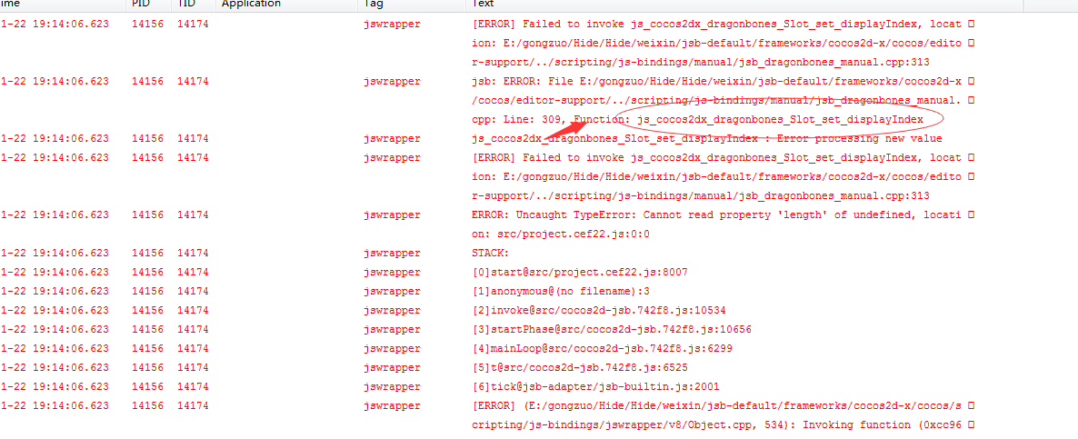 在编辑器上没有问题,但是打包安卓的时候调用cocos2dx龙骨动画的时候报错了,导致apk进不去界面,又哪位大神帮我看看么