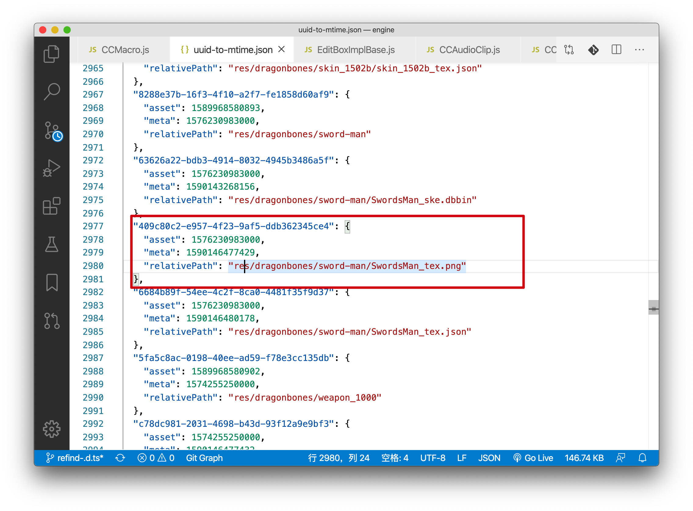 然后在项目里面的 uuid-to-mtime.json 中找,对应的 uuid 就是构建之后的文件名的一部分。