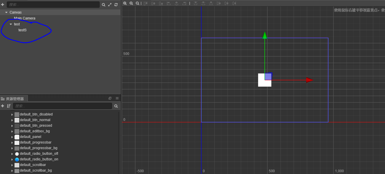 testS节点的坐标为(10,10),test节点为(0,0)