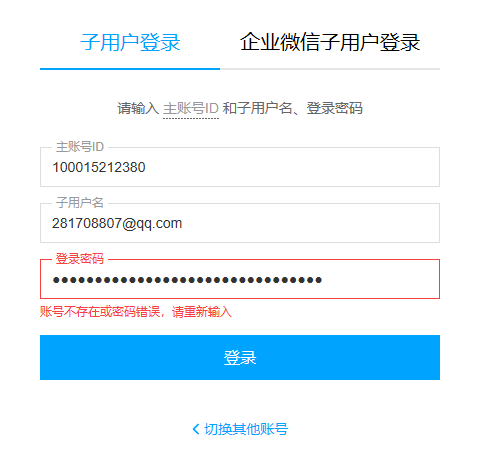 creator生成的腾讯云子账号 腾讯云提示密码错误
