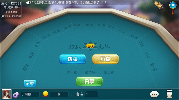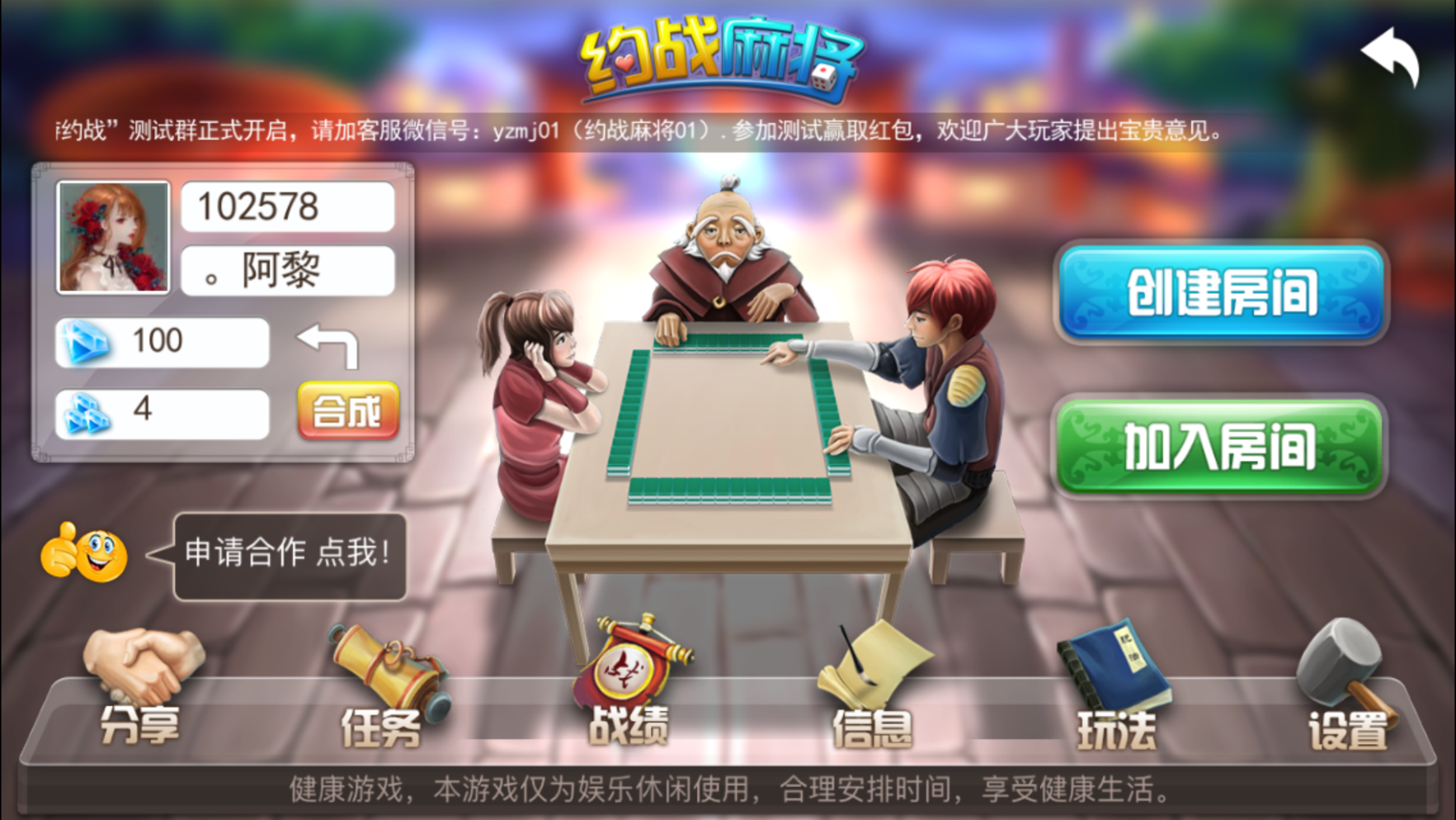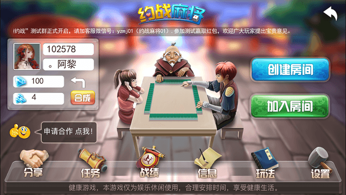 用时半年,前端用Creator,后端用c++的"约战麻将“现在开始公测了,欢迎论坛里的小朋友试玩提建议和bug,下载地址: