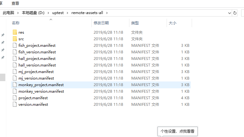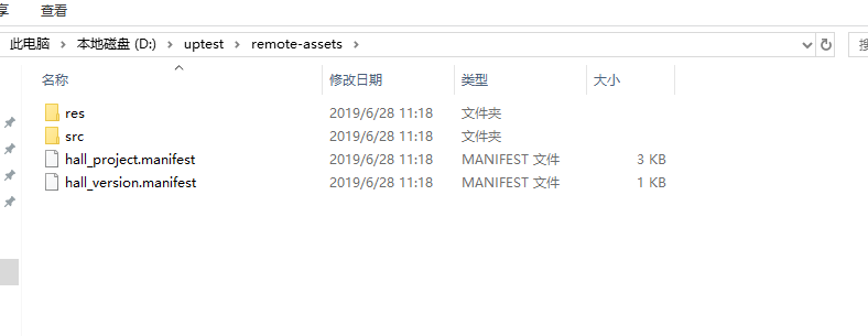 包体内资源表project.manifest,要实现更新,首先包内要有一个记录包体资源的表,我讲此表单独放在了包体内(跟res、src目录同级的目录中),而不是当作游戏资源打包。