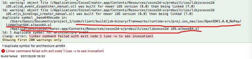 libcocos2d IOS.a和libWeChatSDK.a里面有冲突