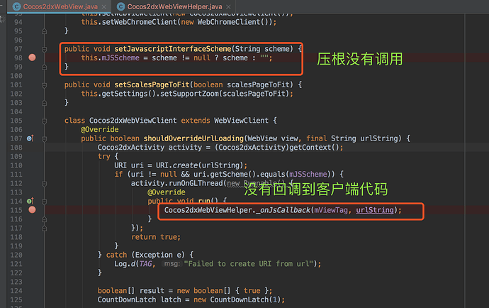setOnJSCallback 应该是有响应的,你标示的代码没有执行到?