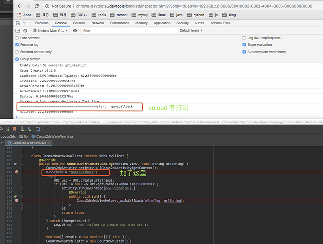 点击index.html的按钮有debug到 Cocos2dxWebViewHelper._onJsCallback 但是没有打印. 没有关闭webview