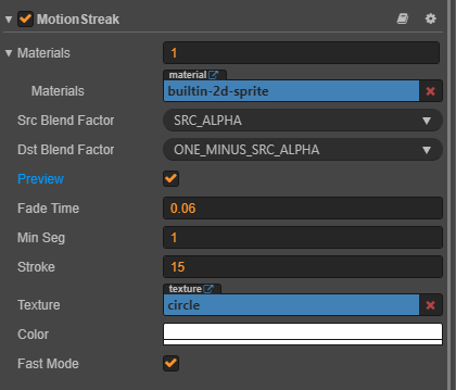 我把拖尾的消失时间改大,由0.06改成3就可以看到
