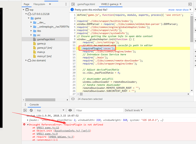 requirePlugin(‘cocos’);报错Uncaught ReferenceError: requirePlugin is not defined
