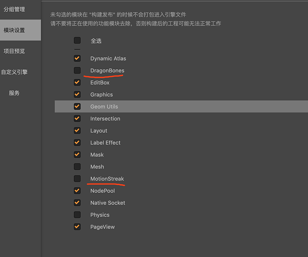 裁剪几个不用的模块后,运行后,会报错,目前只测试安卓设备