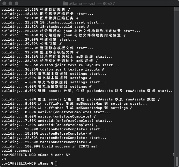 看目录,构建已经成功构建出项目工程,但是进程退出码却是78?
