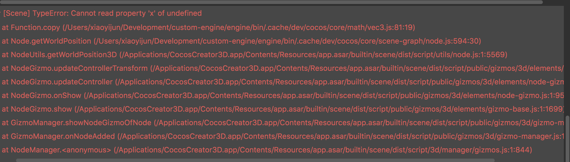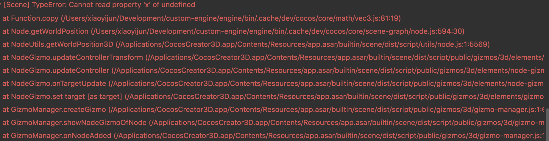 at NodeGizmo.updateController (/Applications/CocosCreator3D.app/Contents/Resources/app.asar/builtin/scene/dist/script/public/gizmos/3d/elements/node-gizmo.js:1:4056)
