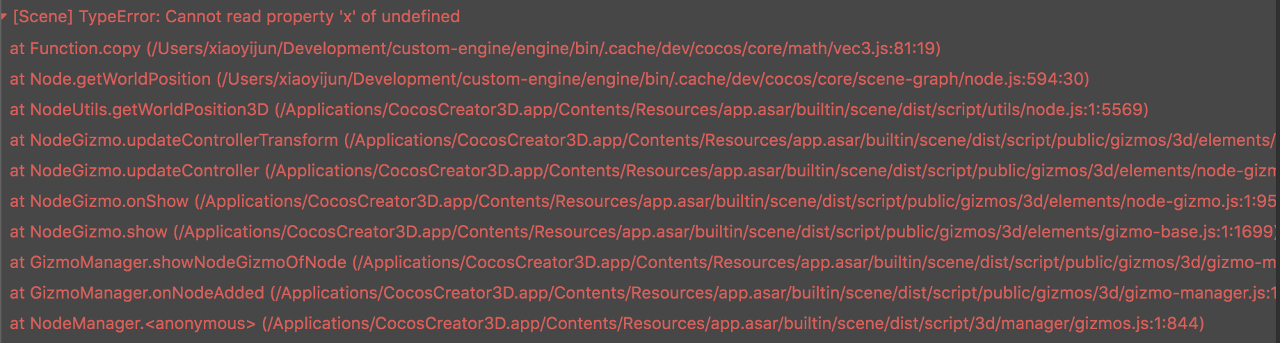 at NodeGizmo.updateControllerTransform (/Applications/CocosCreator3D.app/Contents/Resources/app.asar/builtin/scene/dist/script/public/gizmos/3d/elements/node-gizmo.js:1:3441)