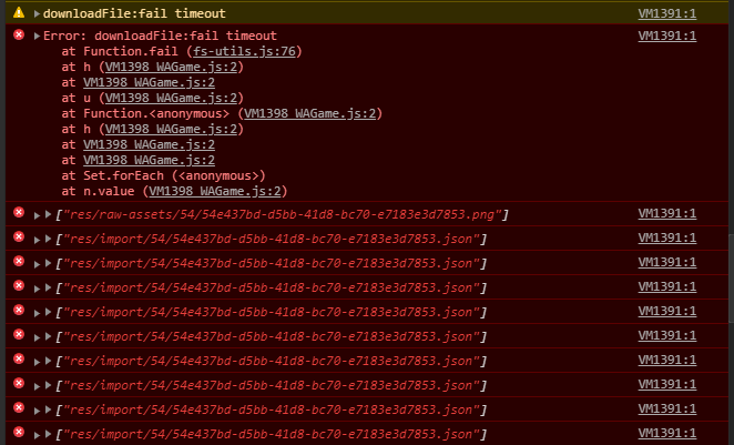 问题解决方案为,设置game.json里面downloadfile的时间修改为20000即可;