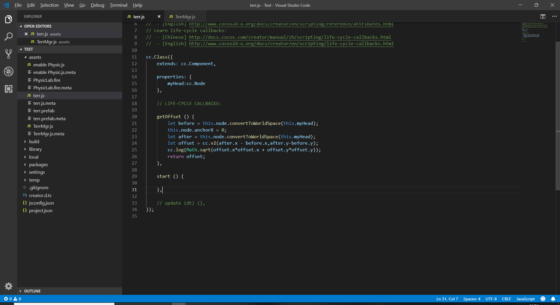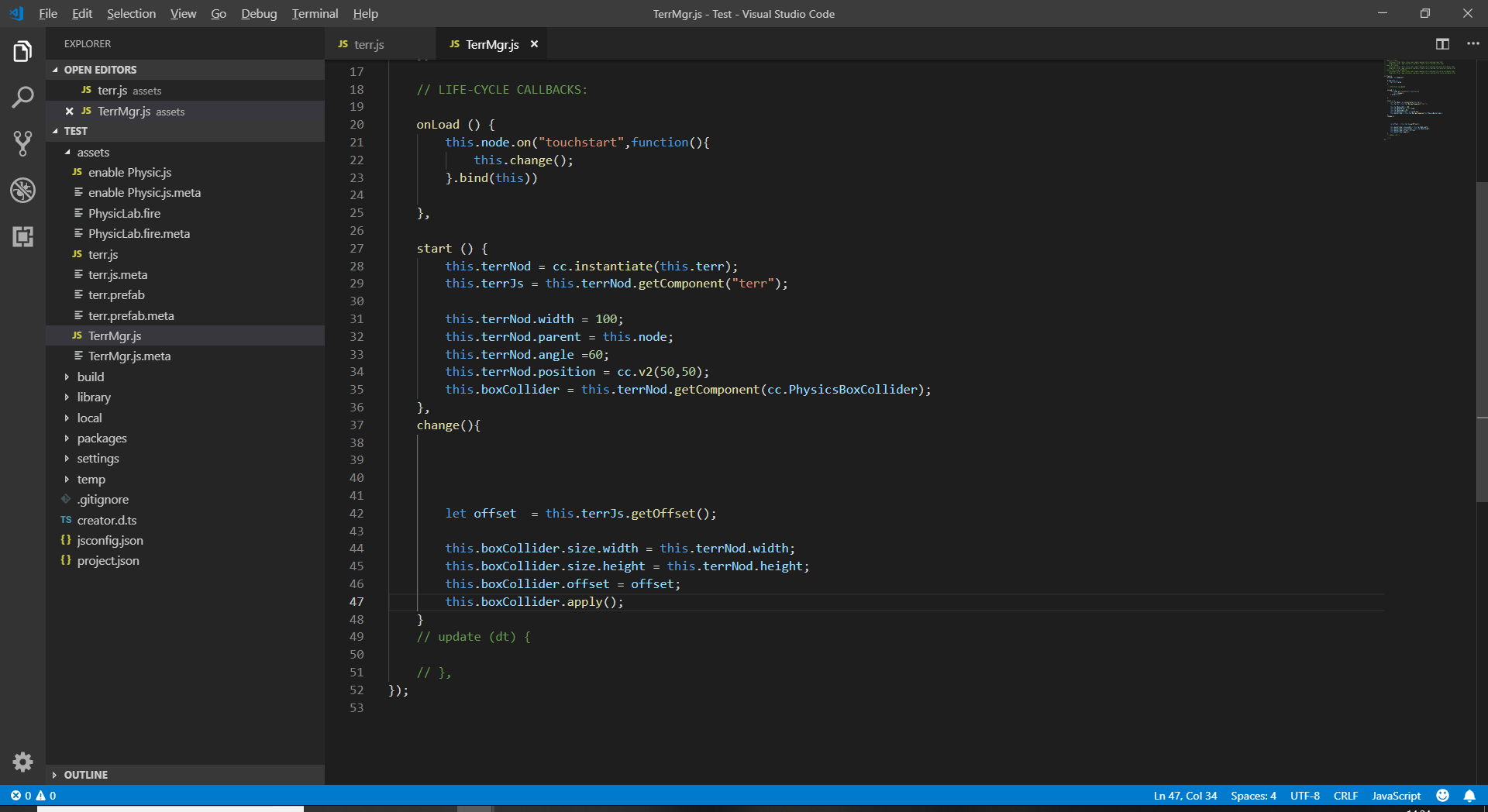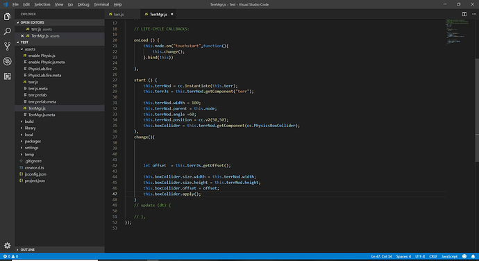 我的项目用到了物理引擎,但是地面是根据json文件绘画出来的,所以这就涉及到要让我地面的physicalBoxCoillder是实时更新的,但是如果直接修改physical里面的size得出的结果不对(默认以中心为原点进行绘制size而我的预制的锚点是0,0.5的位置)。