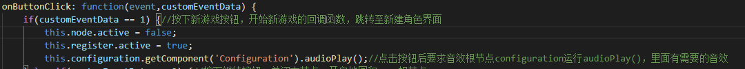 下图是在按钮所在节点的代码: