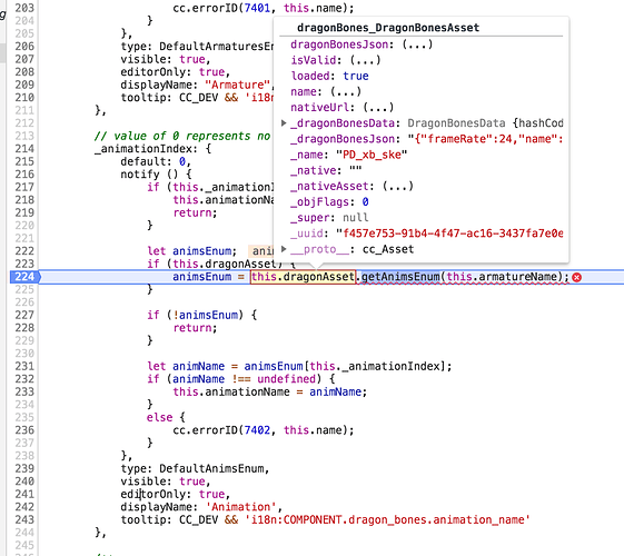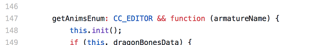 原因我翻源码找到了,https://github.com/cocos-creator/engine/blob/master/extensions/dragonbones/DragonBonesAsset.js 中的 getAnimsEnum加了CC_EDITOR