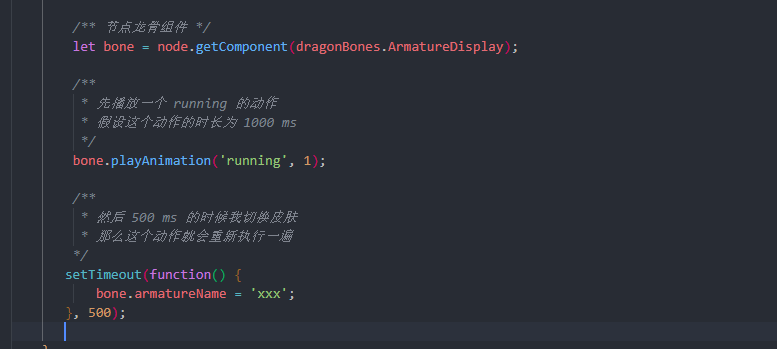我的意思是:希望在动画进行到一半的时候更改armatureName,同时动画继续进行,而不是重新运行一遍,这样不行吗?