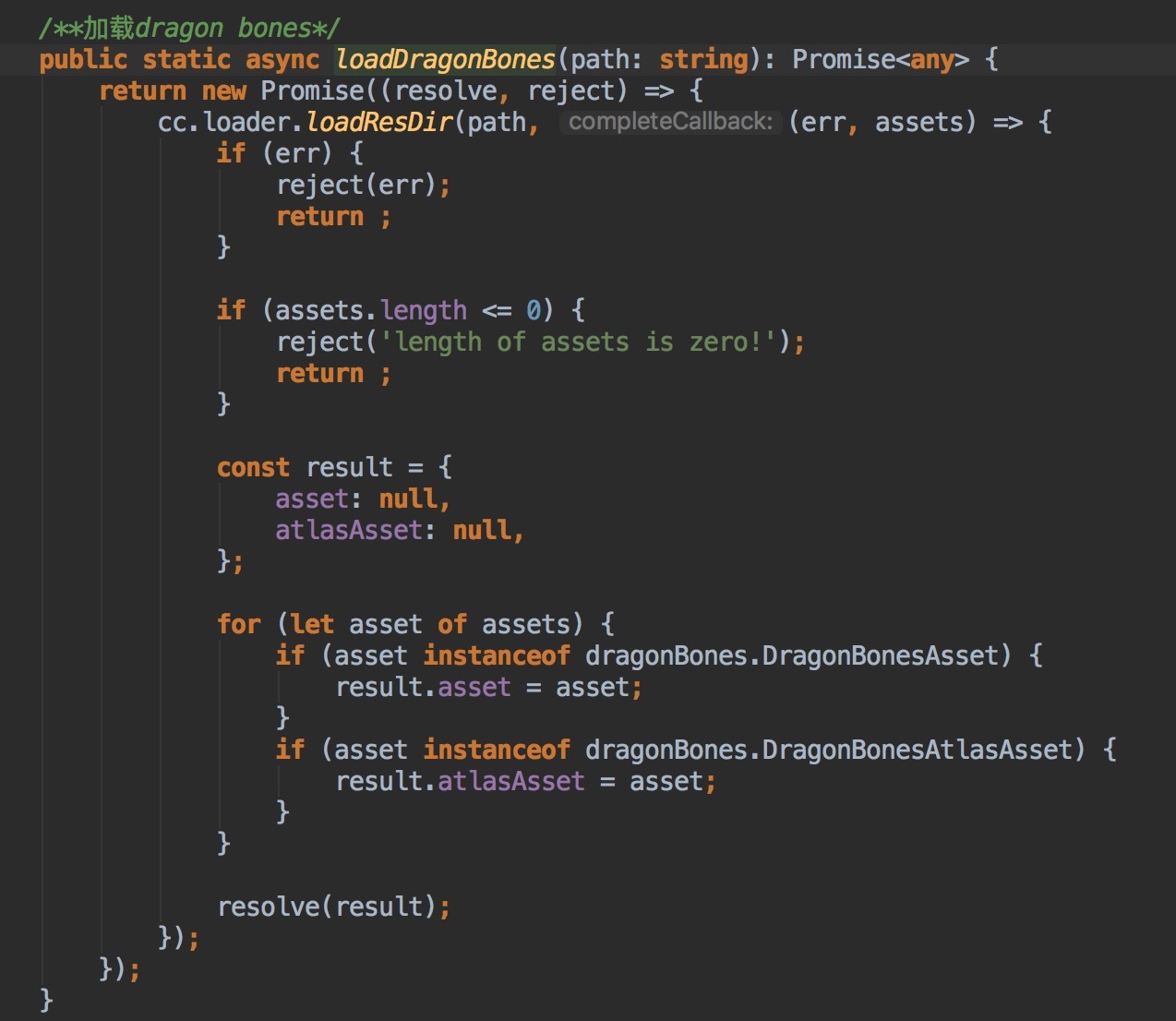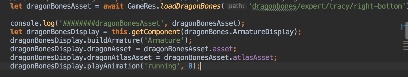 动态加载dragon bones,目前是动画无法显示,有一个No armature data. Armature的警告,已检查cc.loader.loadResDir是把资源读出来了的,不知道是哪里没搞对。