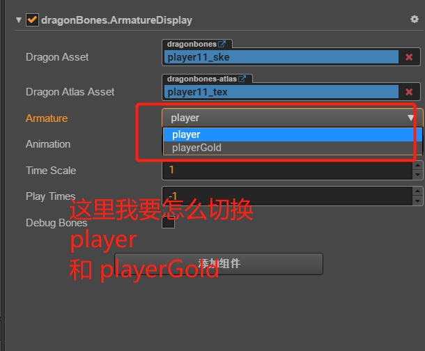 那个Armature 这个里面有player和playerGold这两个属性,我的这两个属性怎么设置,这是美术弄得么