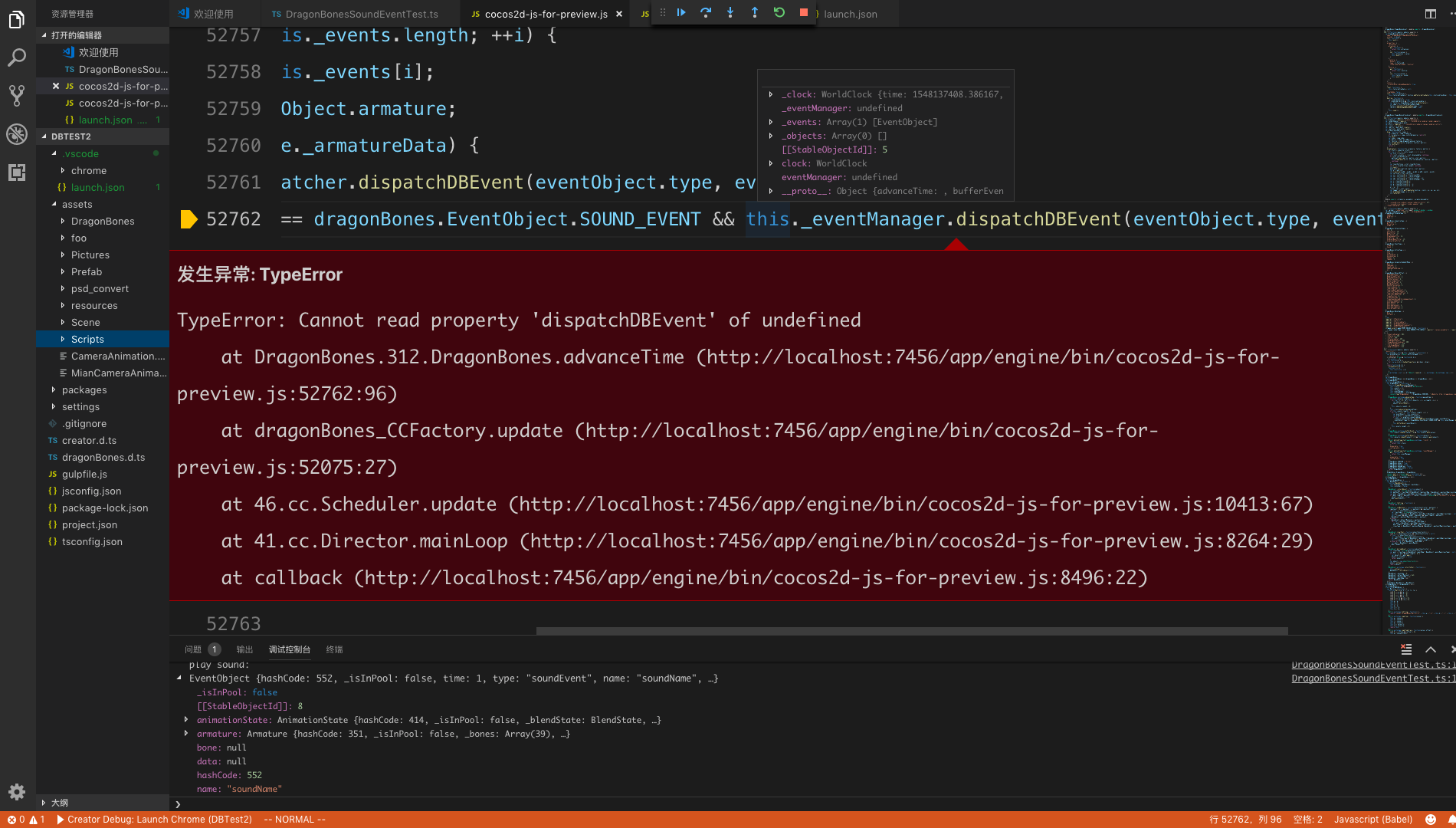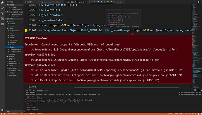这个错误发生在 处理完 “dragonBones.EventObject.SOUND_EVENT” 之后: