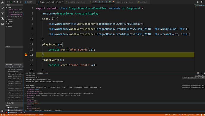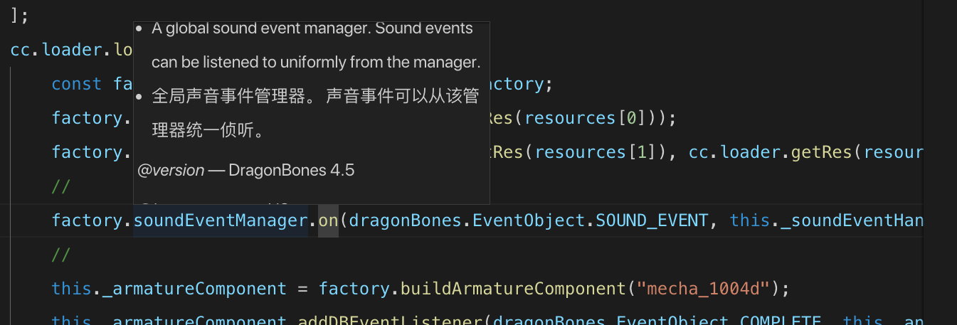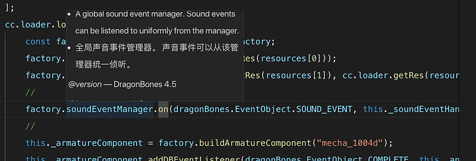 龙骨声音事件的监听用factory.soundEventManager来监听也不行,报错说说dragonBones里面的CocosFactory不存在